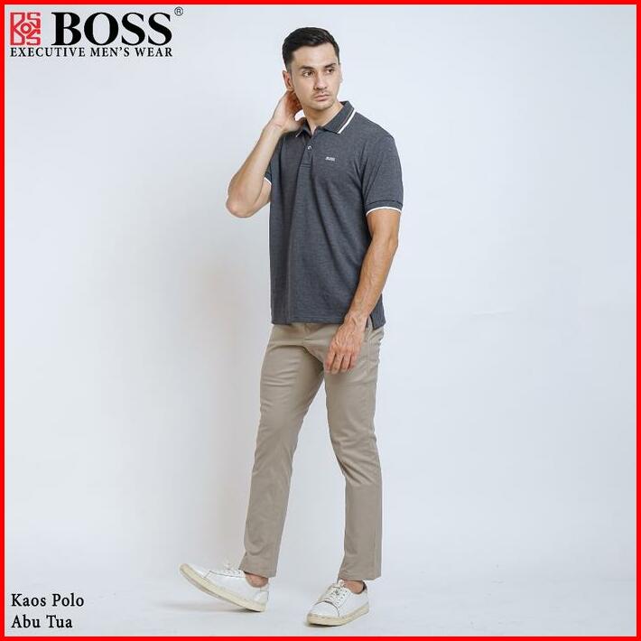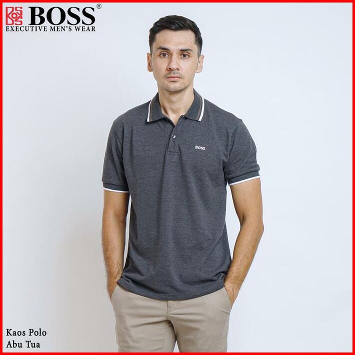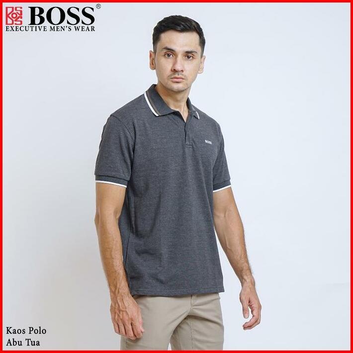 Boss Kaos Polo Polo Shirt Pria Regular Fit Abu Tua