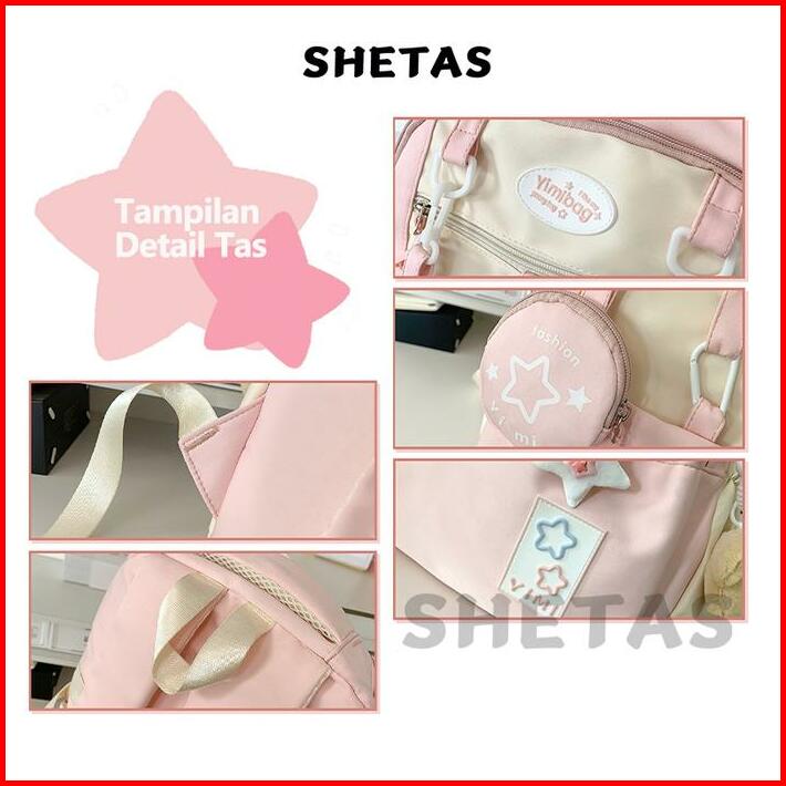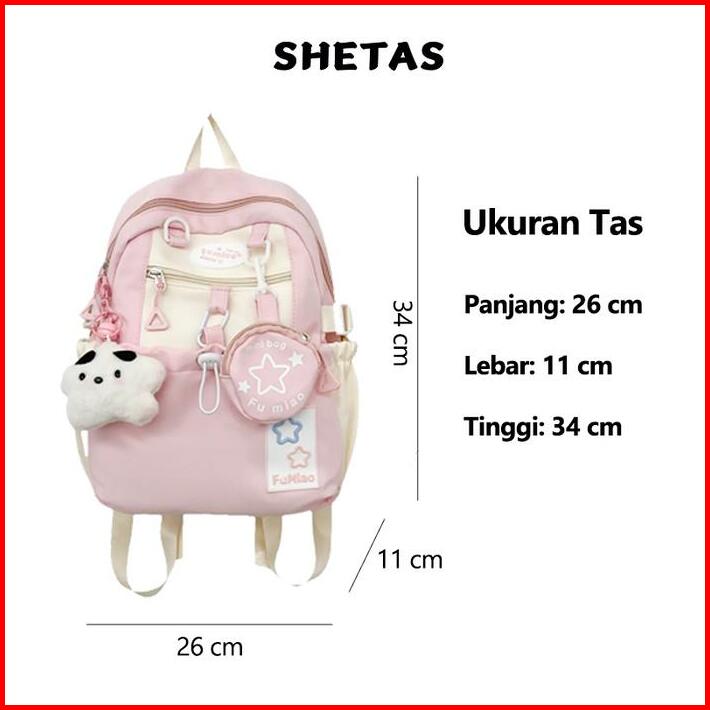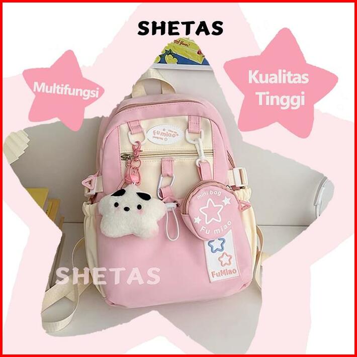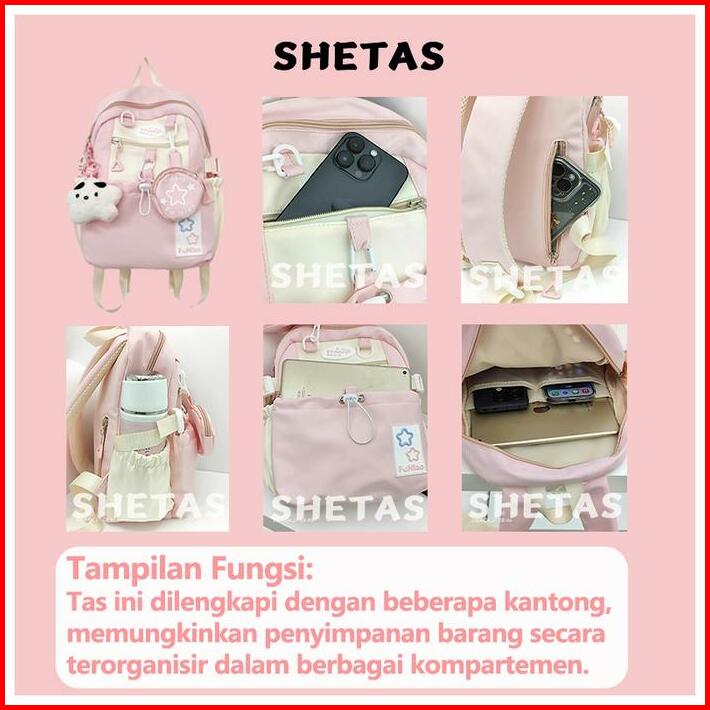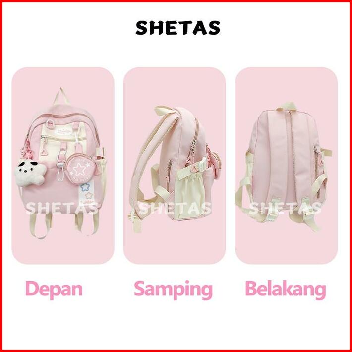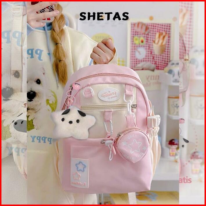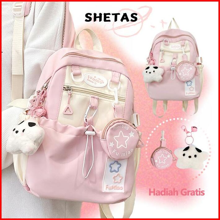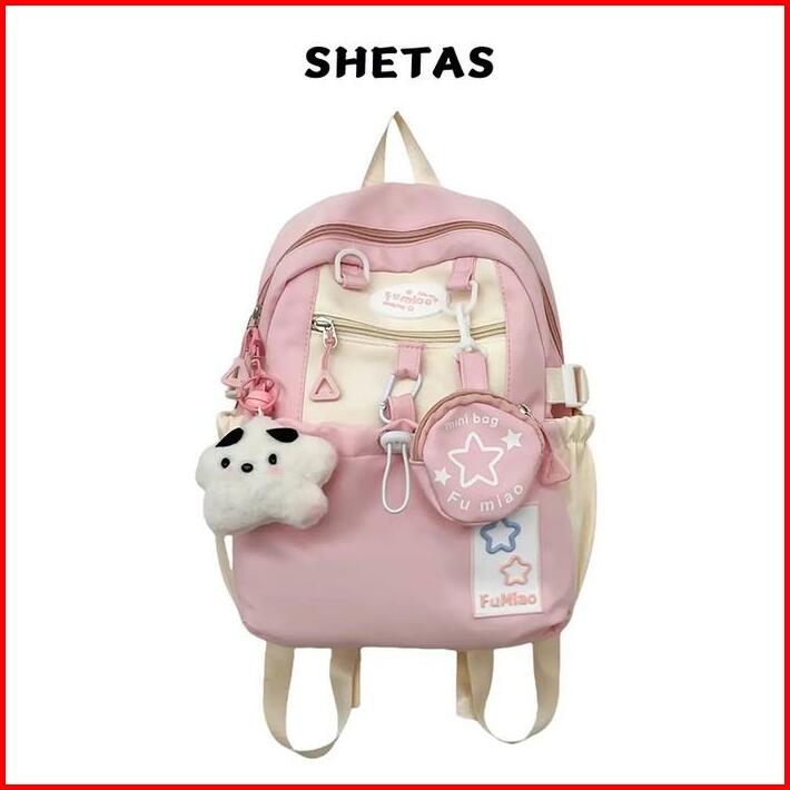Shetas Tas Sekolah Wanita Lucu Warna Pink Biru Kuning Gratis Sampel Ransel Serut Kapasitas Besar Multifungsi Multi Kanto