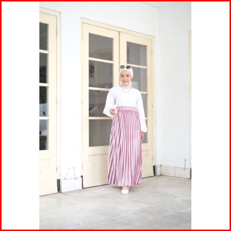 Rok Plisket Velvet Bludru Import Premium Rok Plisket Bludru Premium Panjang