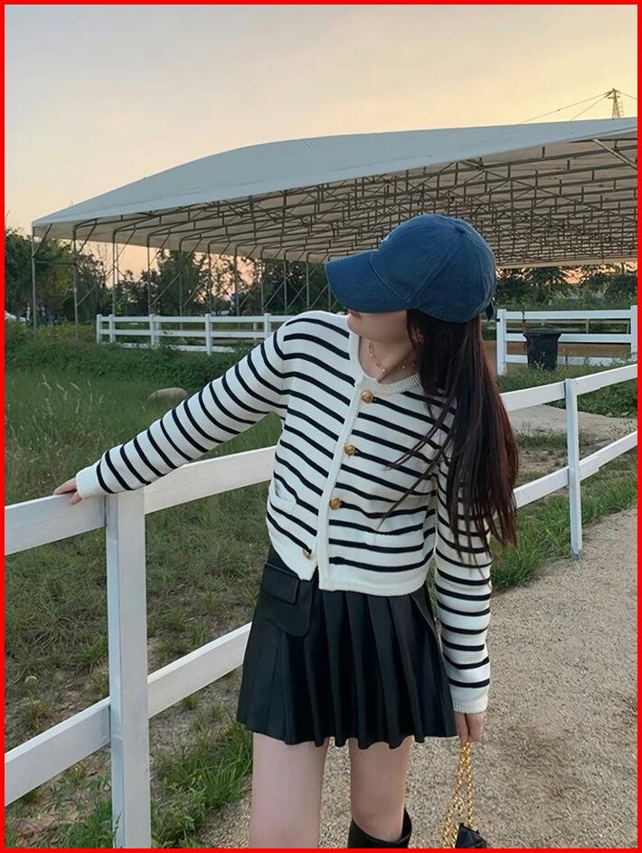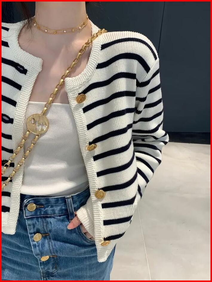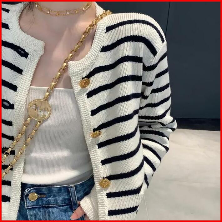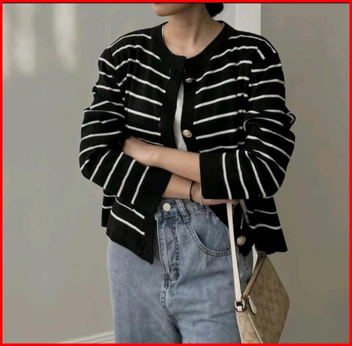 Mimi Cardigan Rajut Motif Salur Baju Knitwear Wanita