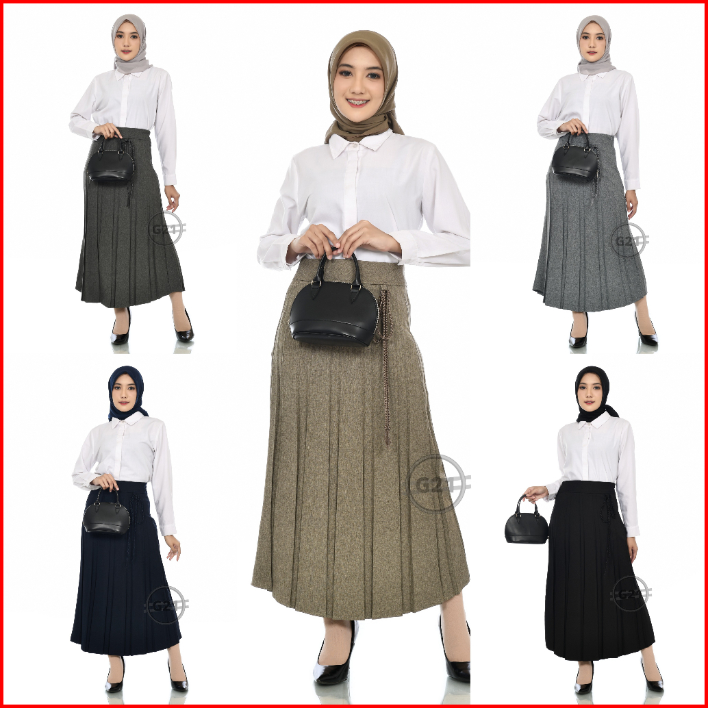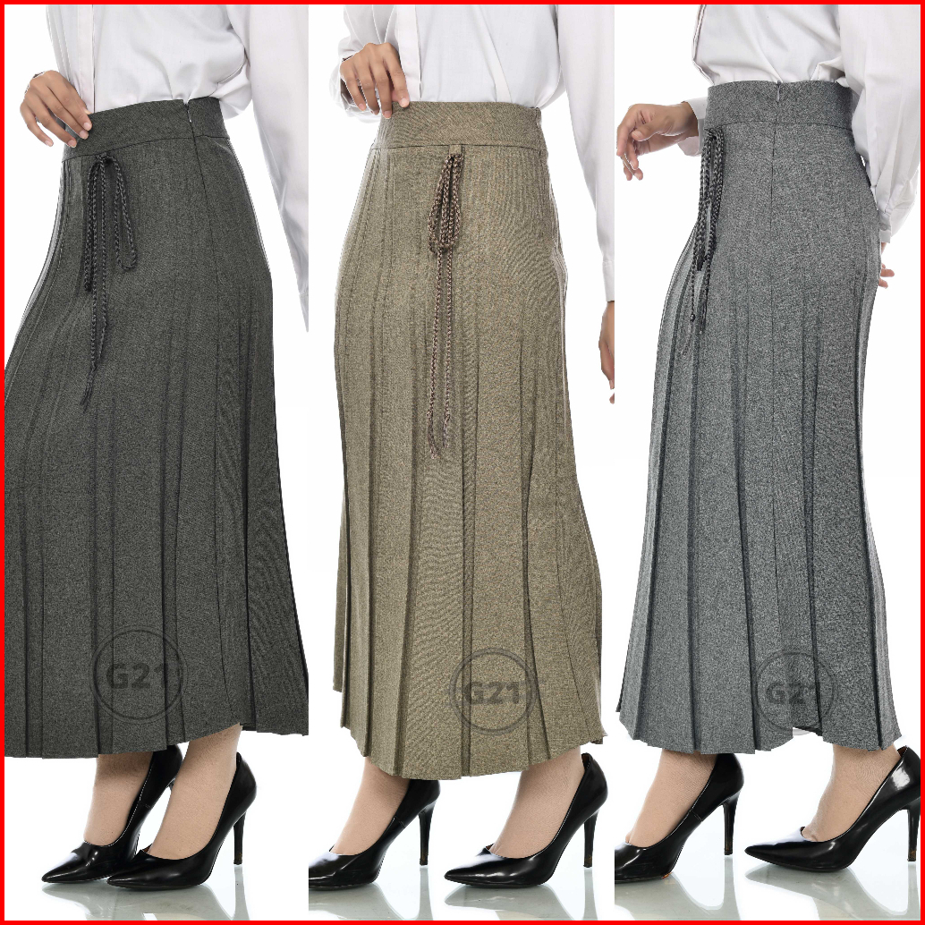 Rok Panjang Prisket Rempel Formal Kerja Kantor Hitam Wanita Bahan Polycotton Premium