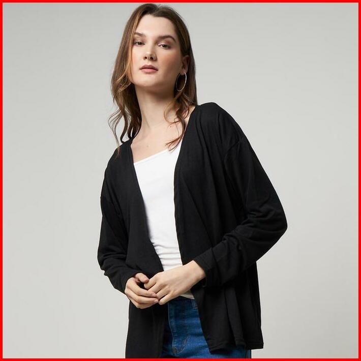 Monellina Crspx Cardigan Oversize Wanita Basic Polos Panjang Tangan