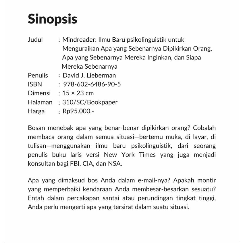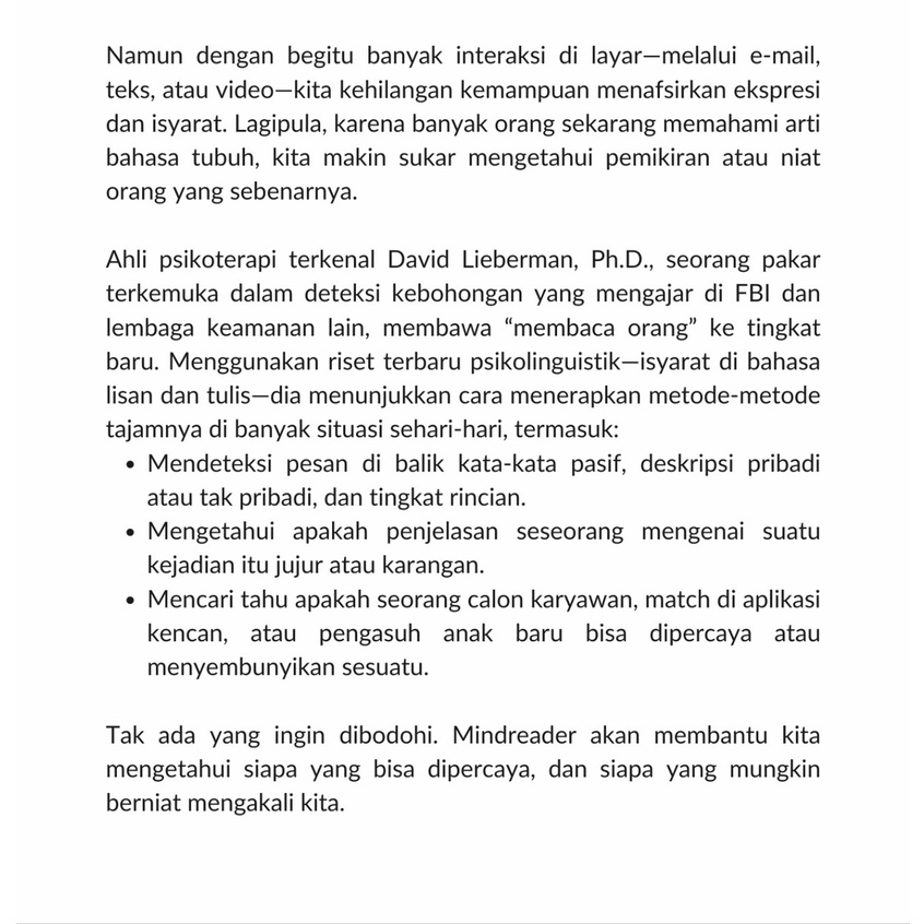 Buku Mindreader – Psikologi & Self Improvement – Pustaka Raya