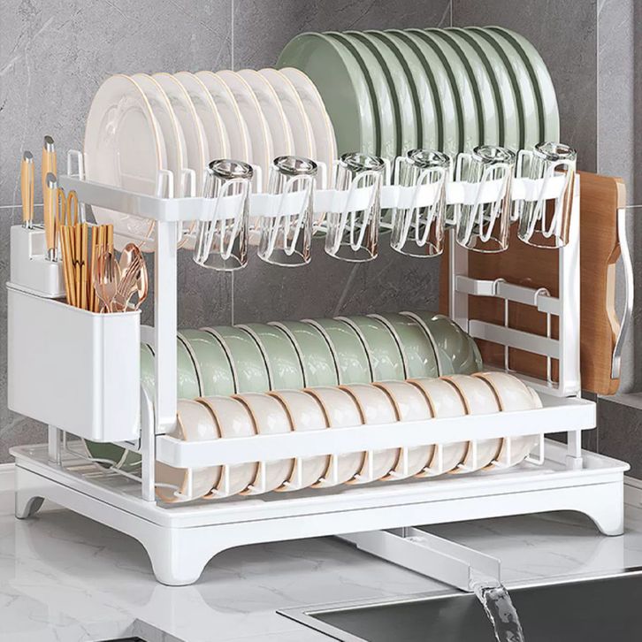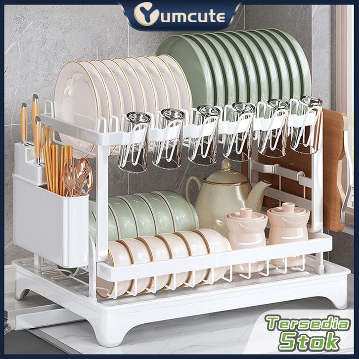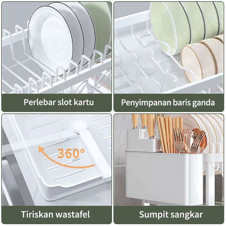 Rak Penyimpanan Stainless Steel Penyelenggara Dapur Baki Peniris Otomatis Sinki Rak Pinggan Mangkuk Rak Dapur