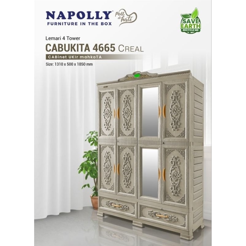 Promo lemari pakaian plastik napolly 4pintu MAHKOTA CABROTA 466 DK