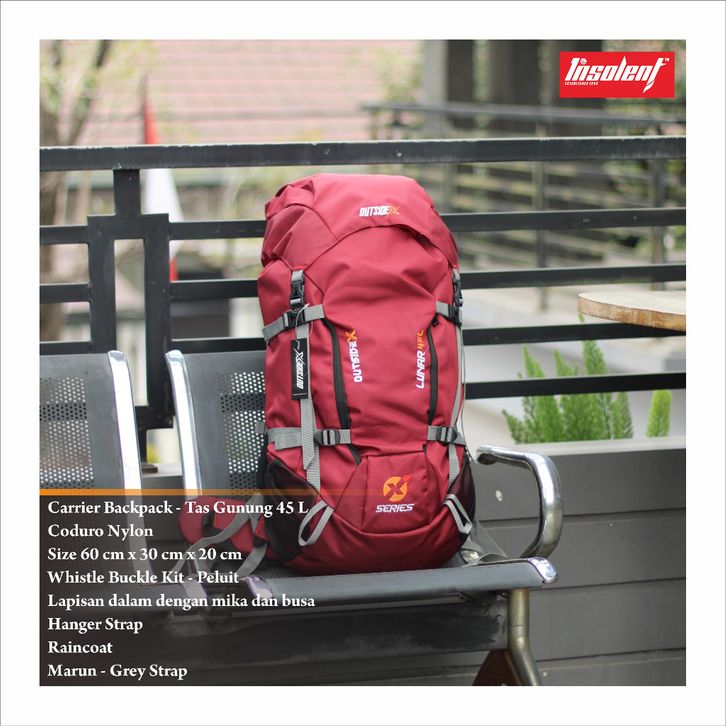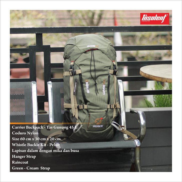 Insolent - TAS RANSEL CARRIER LUNARInsolent - T SERIES GUNUNG CAMPING OUTDOOR BACKPACK 36 L RAIN COAT PELUIT WHISTLE KIT