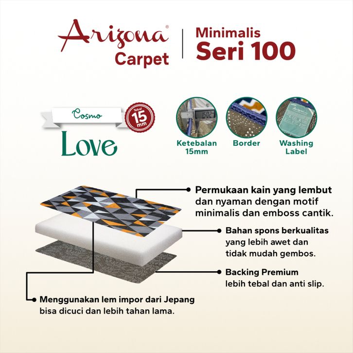 [190x270cm] Arizona Carpet Cosmo Love Karpet Busa Malaysia Motif Minimalis