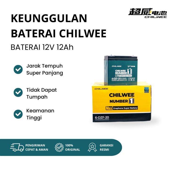 BATERAI / AKI Premium Graphene 12V 20Ah / 25Ah SEPEDA MOTOR LISTRIK Chilwee