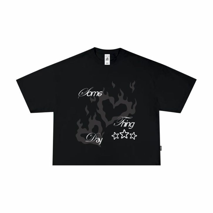 Kaos Pria Distro Bandung T-shirt | Boxy fit | love fire | black | somethingday.