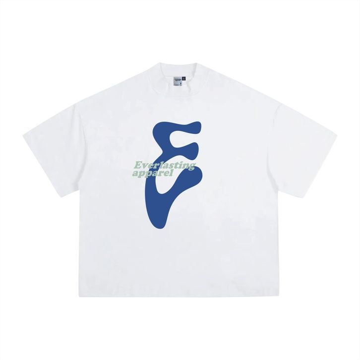 Kaos Pria Distro Bandung EVERLASTING APPAREL - T shirt Boxy Oversize Equiivalen White n Electric Blue I Baju Kaos Boxyfi