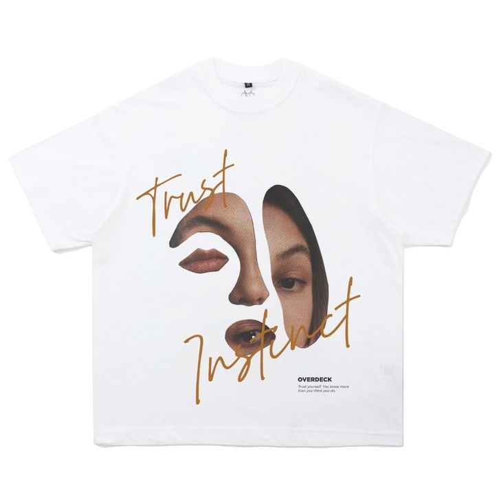 Kaos Pria Distro Bandung Overdeck Kaos Boxy Oversized ( Trust Instinct White )