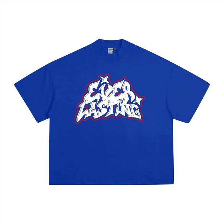 Kaos Pria Distro Bandung EVERLASTING APPAREL - T shirt Boxy Oversize Mountain Electric Blue n Black I Baju Kaos Boxyfit