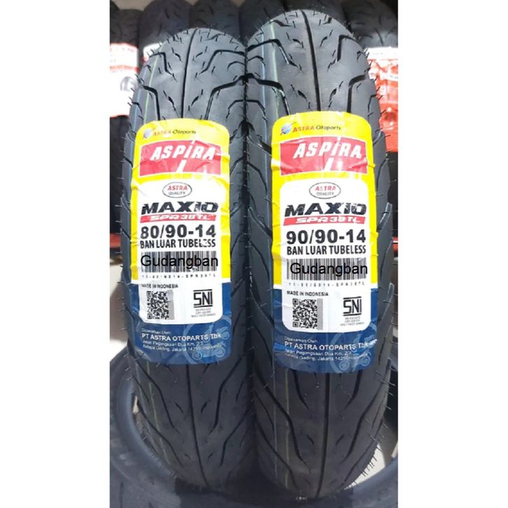 ( TUBELESS ) PAKET 2 BAN - SPR38 80 90 14 DAN 90 90 14 ASPIRA MAXIO BAN MOTOR MATIC FREE PENTIL