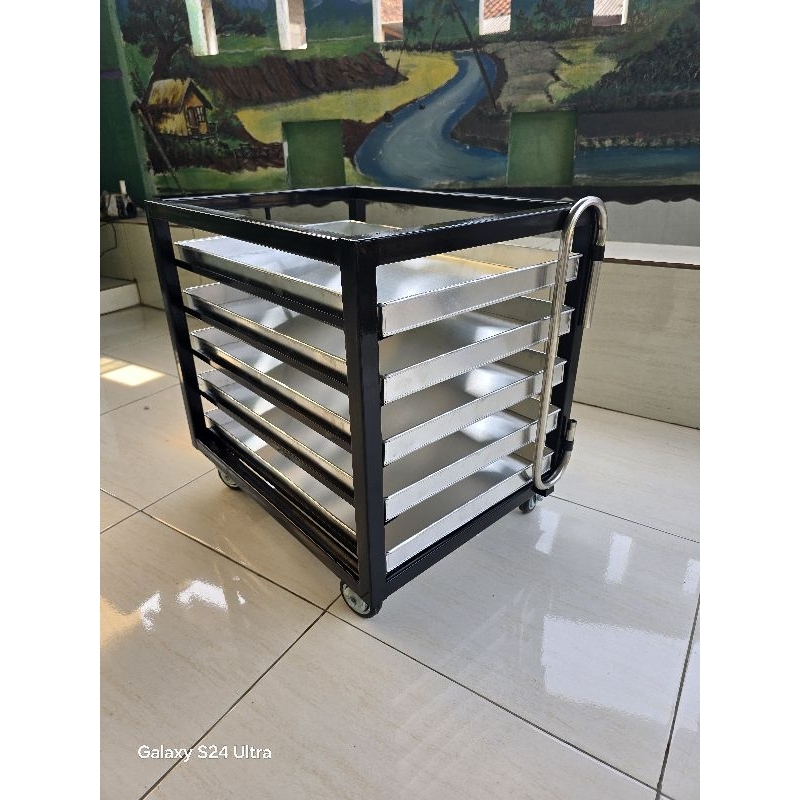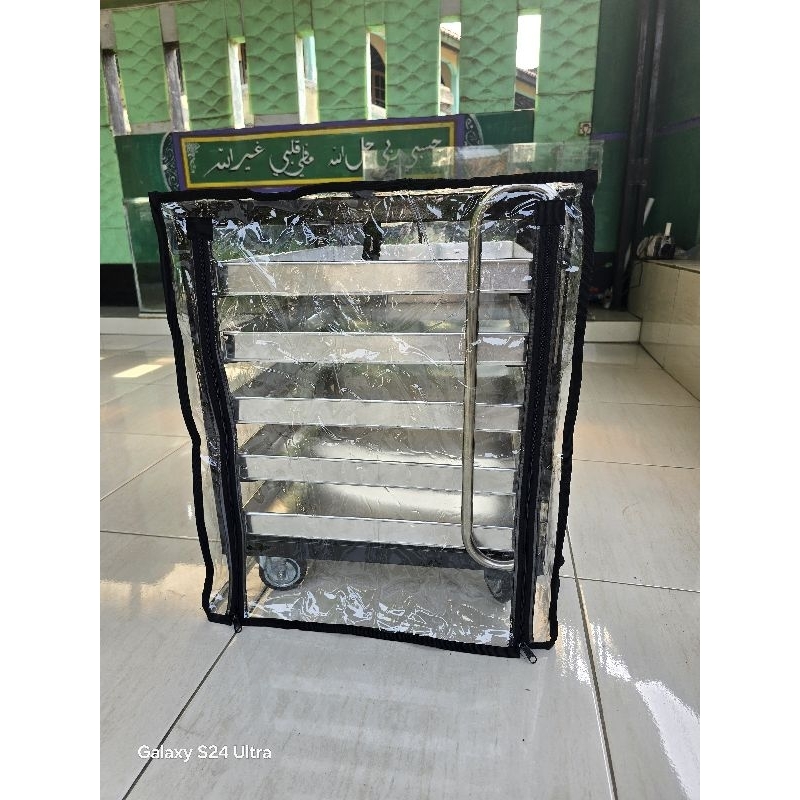 Troly rak loyang bakery 5 susun+cover fullset/rak penyimpanan loyang 60x40+cover/rak proffing/rak roti/rak kue