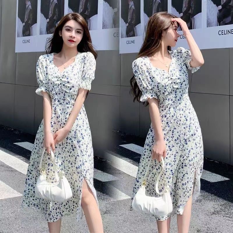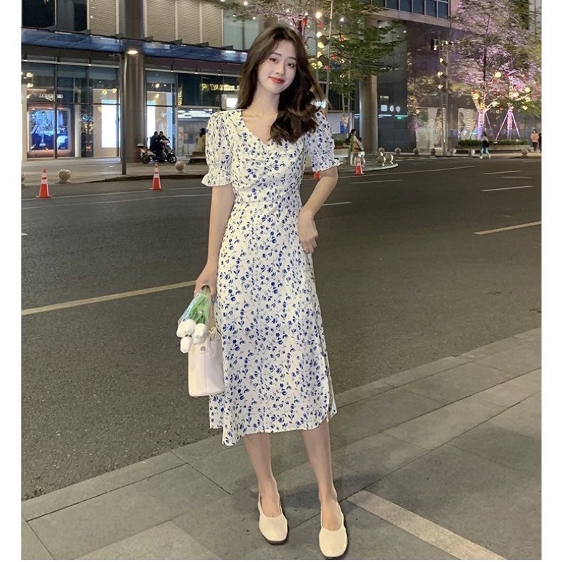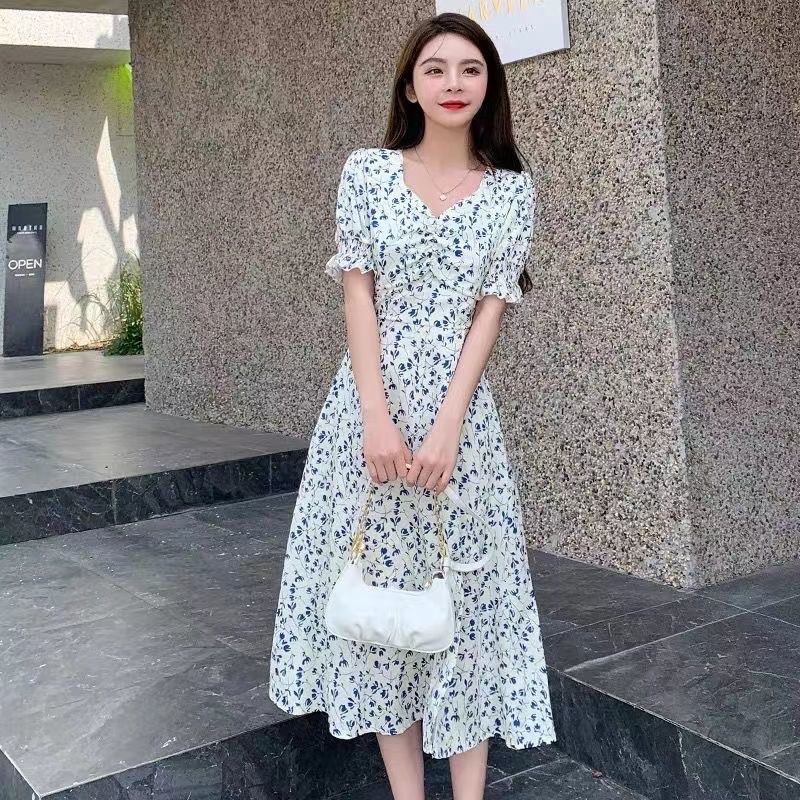 D109 - Tulip Dres / Korean Vintage Dres motif flower / Summer dres casual dres / Gaun wanita motif bunga kekinian impor