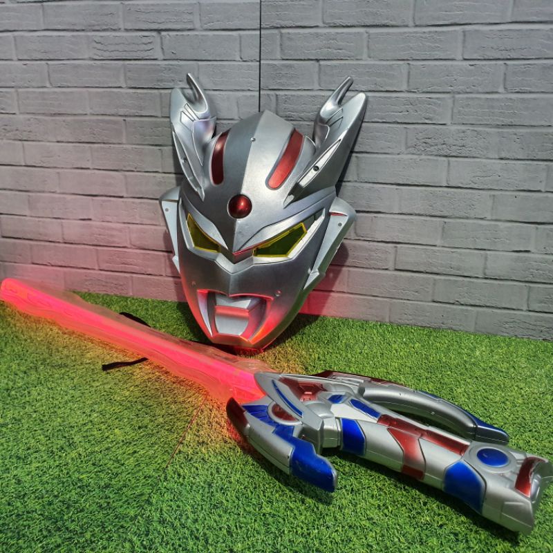 Topeng Pedangan mainan LED Ultraman Retsuden nyala sensor gerak