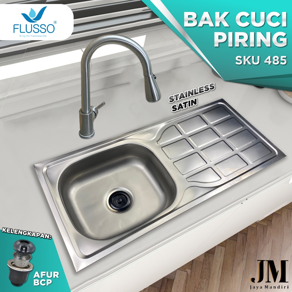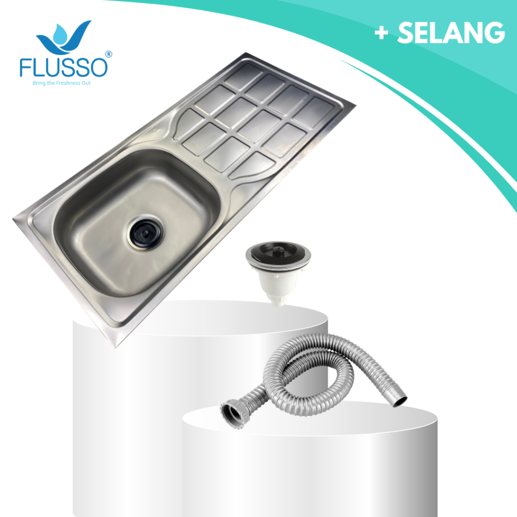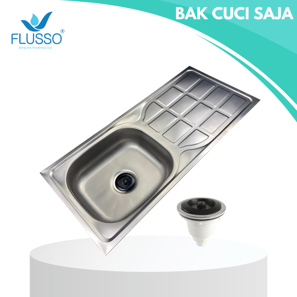 Flusso Bak Cuci Piring Stainless Ukuran 96 cm x 43 cm x14 cm 1 Lubang | 485