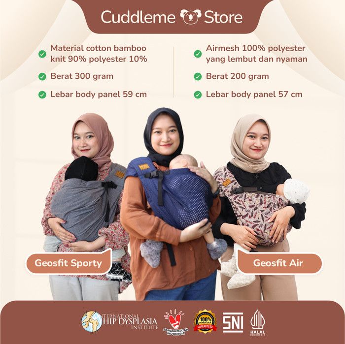 CuddleMe Geosfit Air Gendongan Bayi Newborn Gendongan Geos Gendongan - Solid Sage