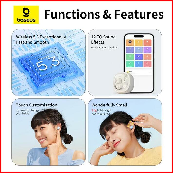 Baseus Wm02 Plus Headset Bluetooth Tws Wireless Earphone Bluetooth Mini Earbuds Handsfree Headphones Telepon
