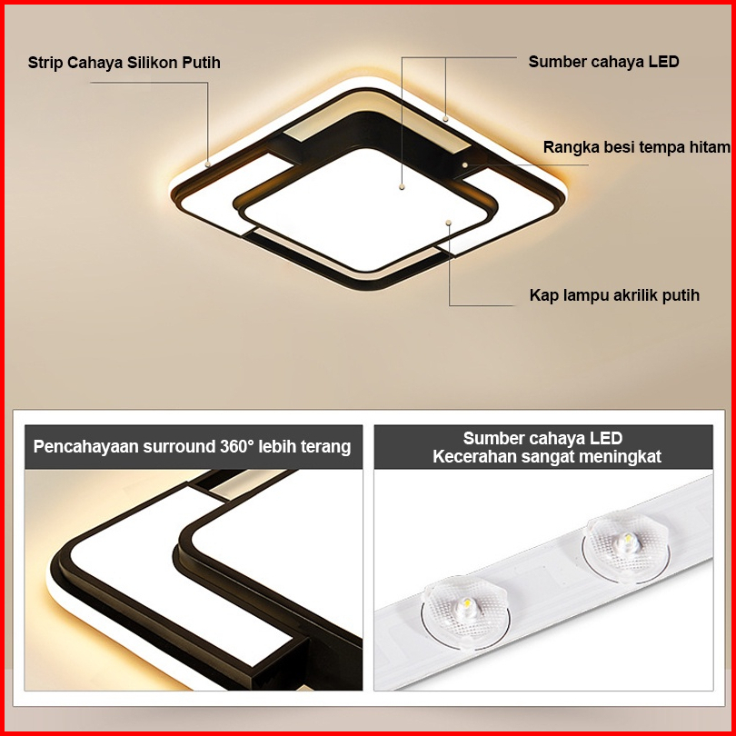 Garansi 3warnalampu Plafon Led Modern Minimalis Bentuk Persegi Gaya Nordic Untuk Dekorasi Ruang Tamu Kamar Tidur 40w