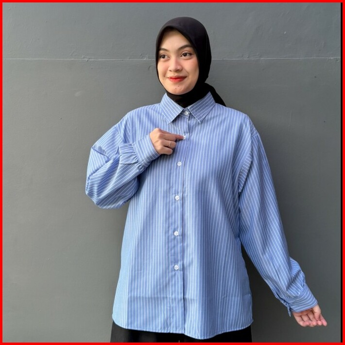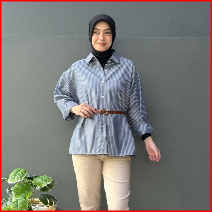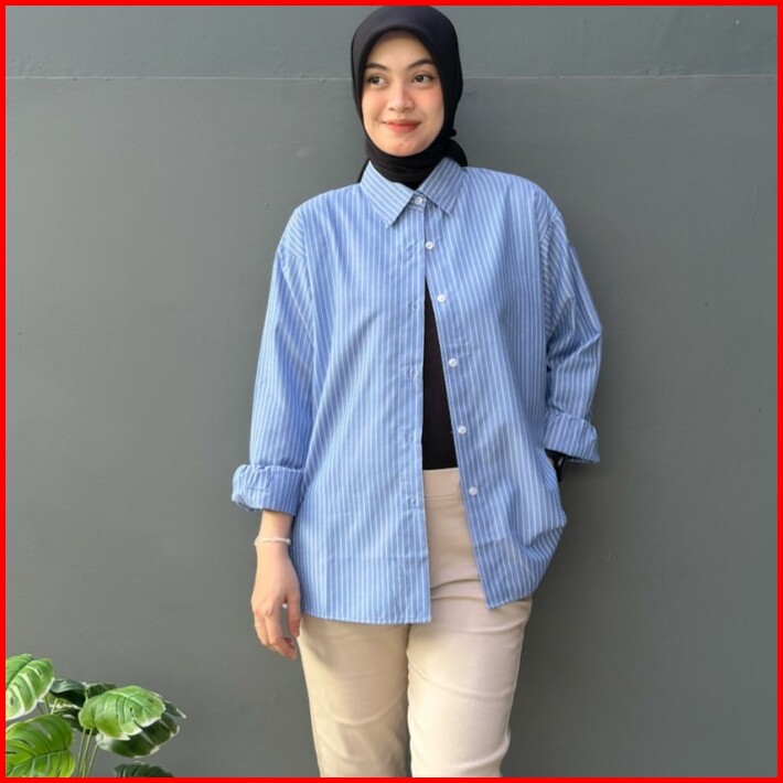 Atasan Kemeja Katun Wanita Ld 120cm Fit Xl Lezahrasignature Cottom Shirt Dhea Stripe