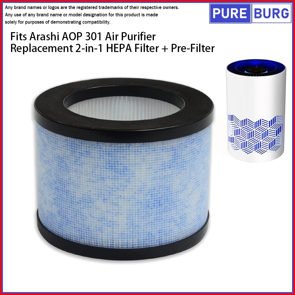 Pureburg - Arashi Aop 301 Air Purifier Filter Pengganti Karbon Aktif Hepa 2in1