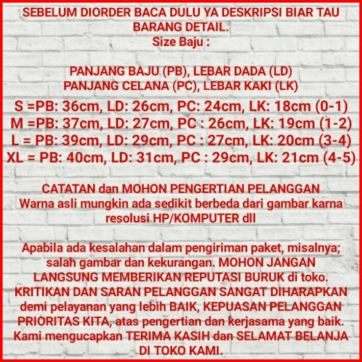 Baju Celana Setelan Anak Laki Perempuan Pakaian Bayi Unisex 0bln-5th