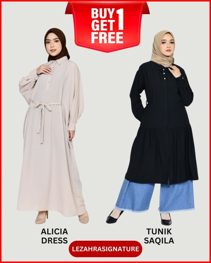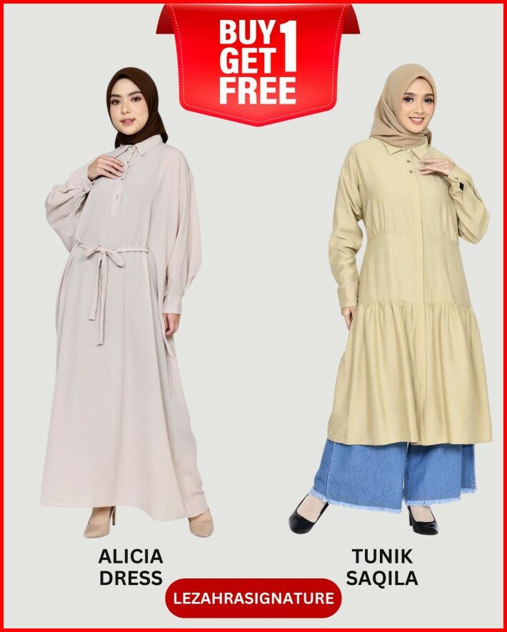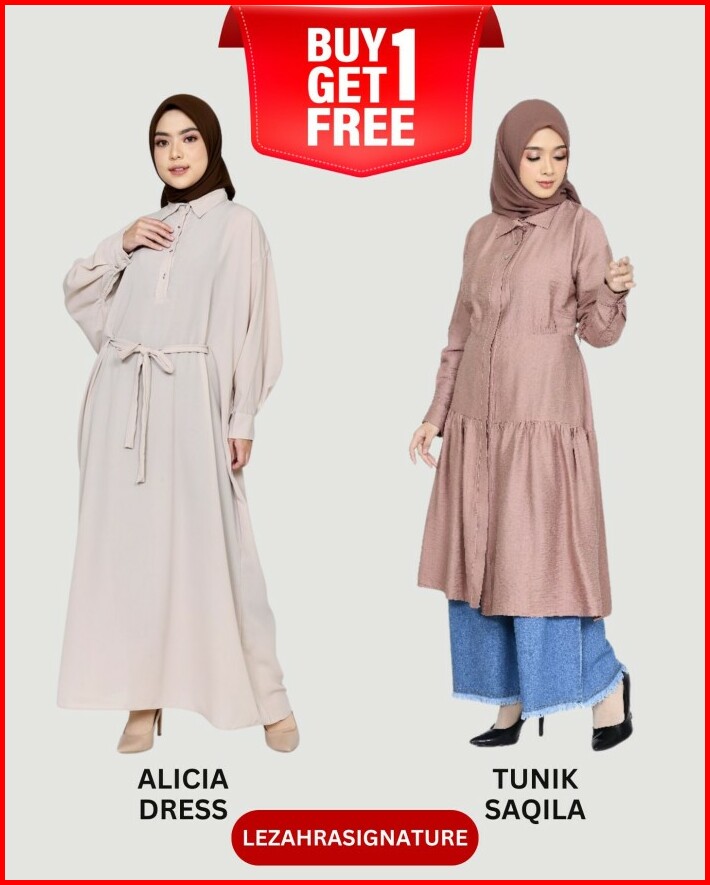 Buy 1 Get 1 Alicia Dress X Tunik Saqila Lezahrasignature Raya Collection Muslim Wanita Ld 110-128cm Fit M-l