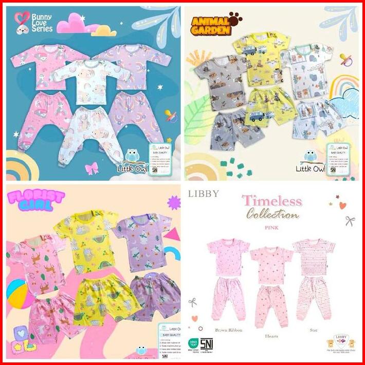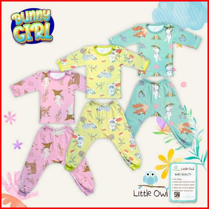 Little Owl 3 Setelan Panjang Oblong Sml 3-18 Bulan Baju Pendek Celana Pendek Baju Panjang Celana Panjang Baju Bayi Newbo