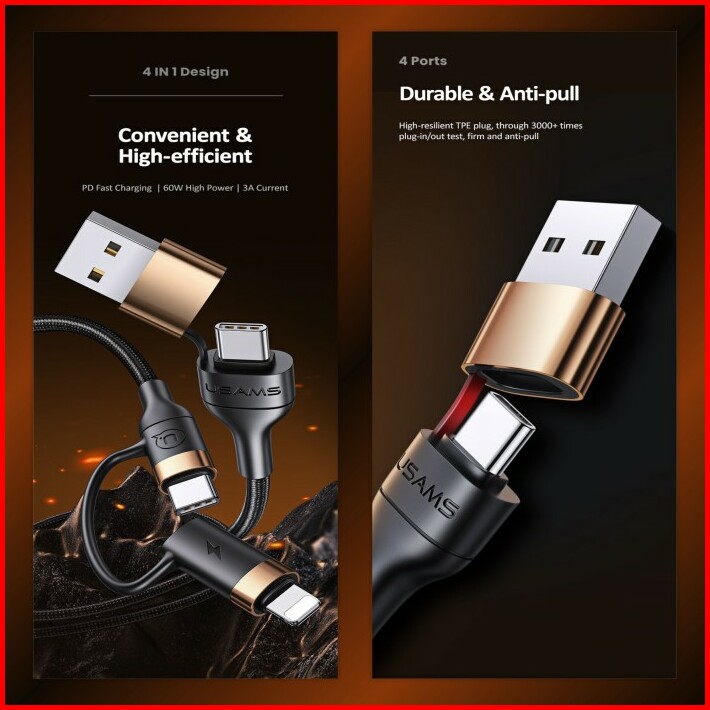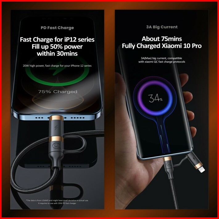 Usams U62 Kabel Data Usb-type C To Type C Lightning Pd Fast Charging