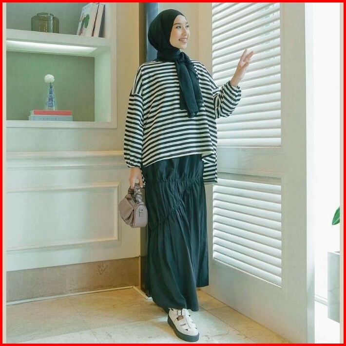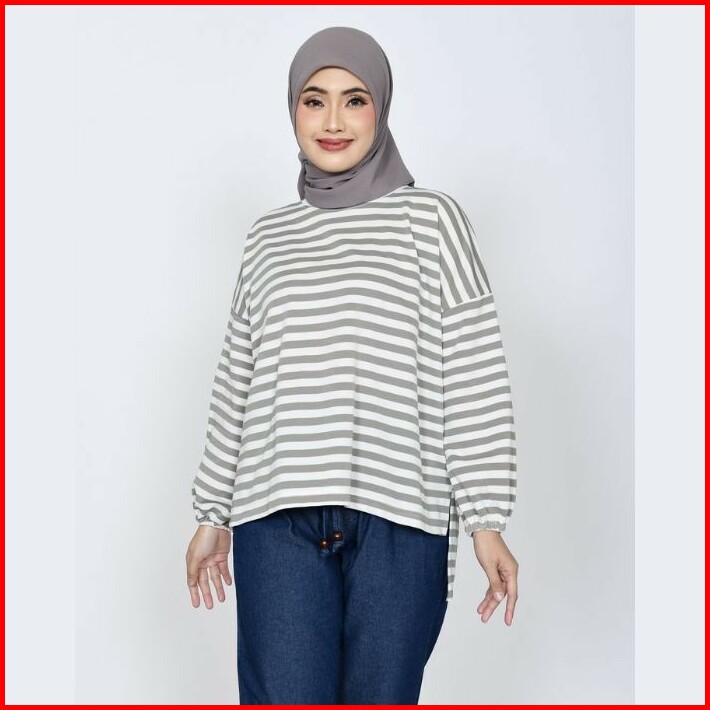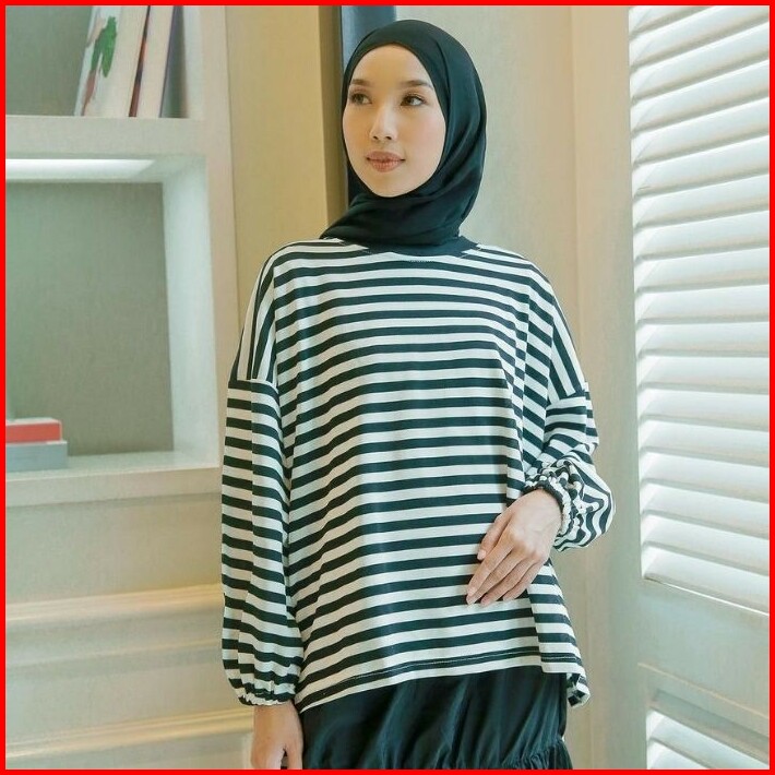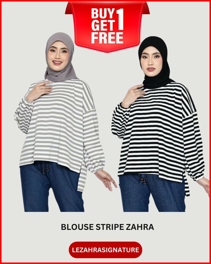 Buy 1 Get 1 Blouse Stripe Wanita Jumbo Puffy Ld 120 Cm Lezahrasignature Baju Blus Salur Zahra