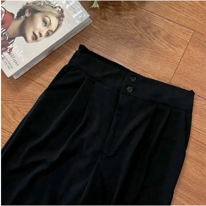 Celana Kulot Panjang Kancing 2 Resleting Loose Pants Highwaist Bahan Knit Premium Polos Kasual