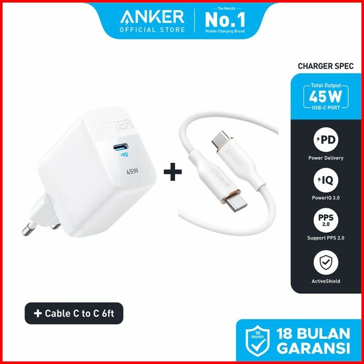 Anker Wall Charger Adaptor Gan Kabel For Samsung Iphone 15 25w 45w Pd Usb Type C Fast Charging Pps