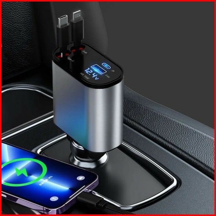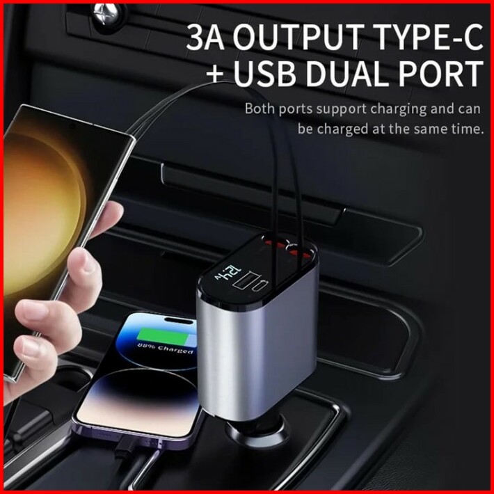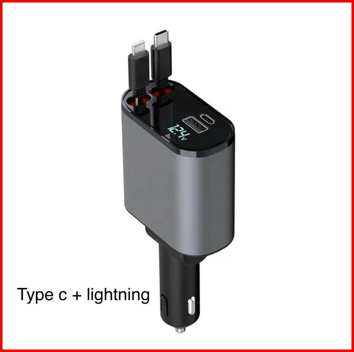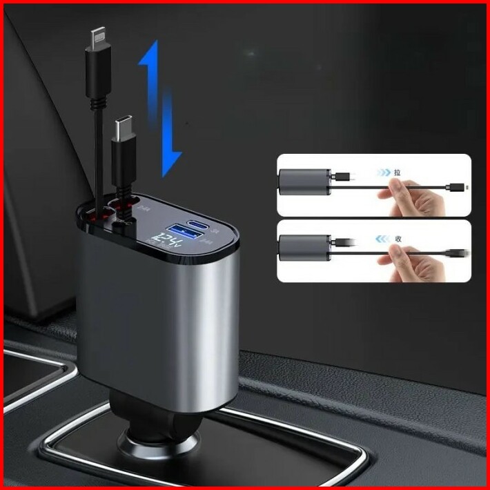 Car Charger Mobil Fast Charging Car Ios Dan Type-c Retractable 120w