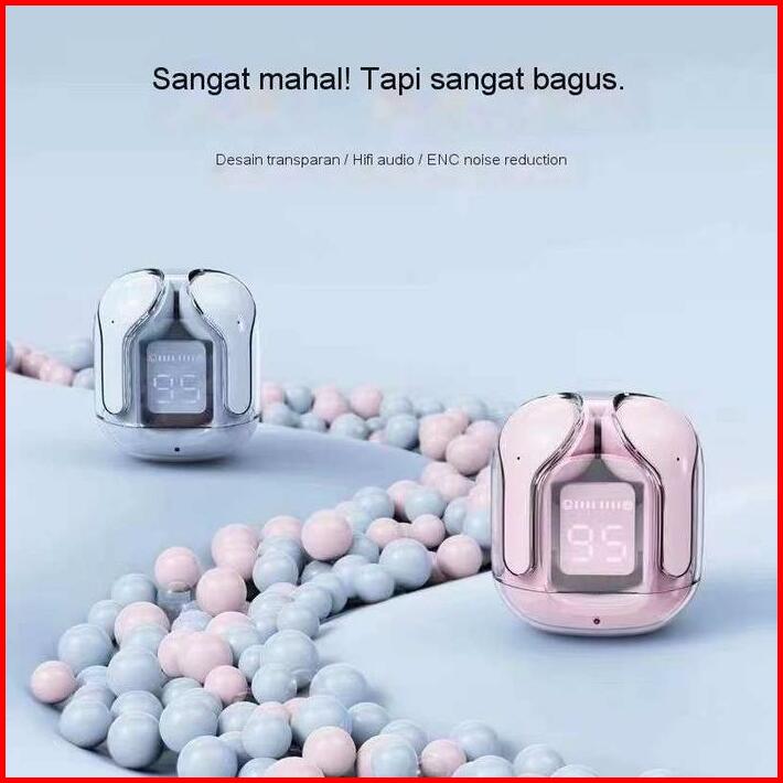 Air31 Headset Bluetooth Tws Wirelles 5.3 Led Display Earphone Suara Hifi Yang Transparan Stereo Bass Speaker Fullbass Mi