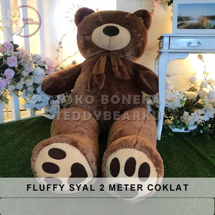Boneka Beruang Teddy Bear Jumbo 2 Meter Warna Coklat Fluffy Syal Hadiah Ultah Valentine
