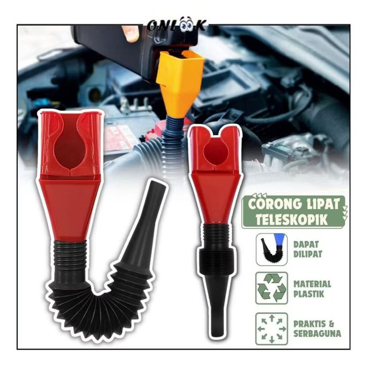 Corong Teleskopik Lipat Plastik Portable / Selang Bantu Pengisi Cairan Air Minyak Mesin Oli Bensin