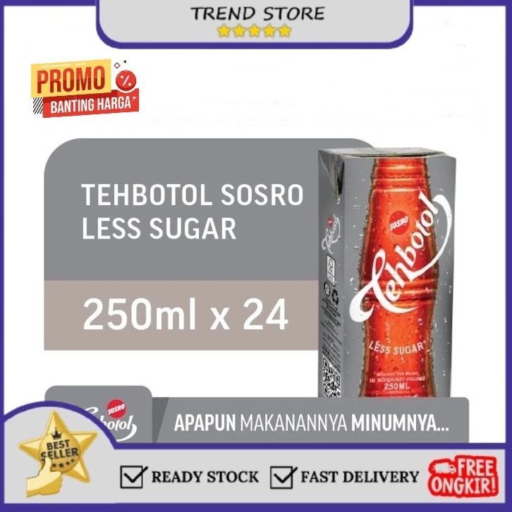 Teh Botol So sro Kotak LESS SUGAR 250 ml 1 DUS ISI 24 pcs - BEBAS ONGKIR