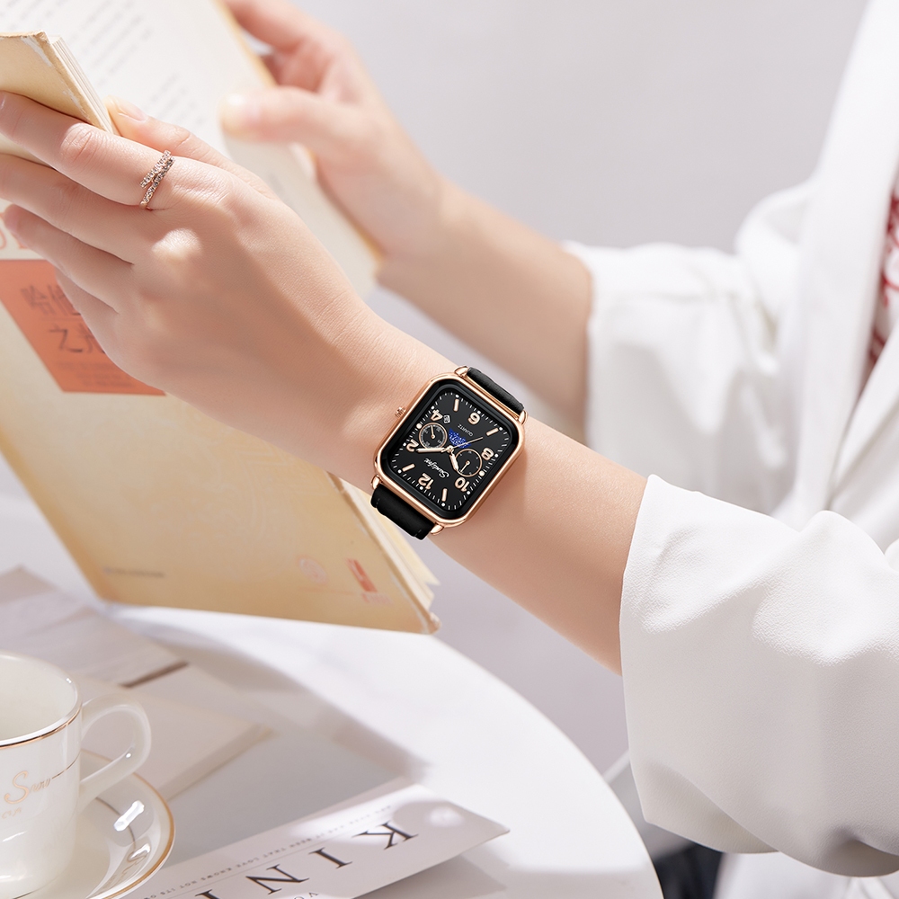 ( PROMO )Sunlifex Jam Tangan Wanita Korean Kasual Mode Tali Kulit Kuarsa Jam Tangan Cewek Original