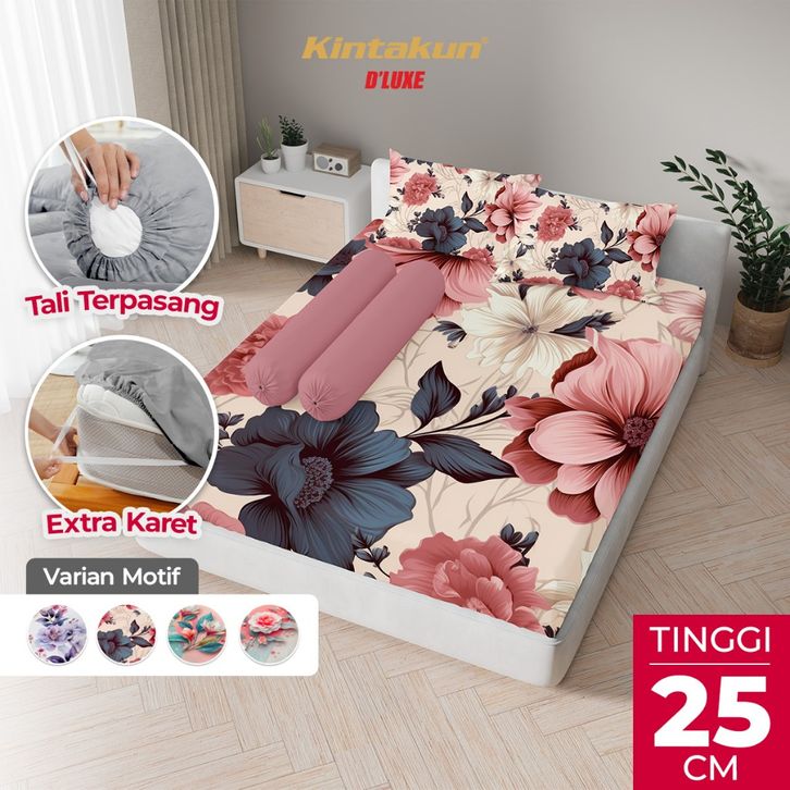 Kintakun Dluxe Sprei Set Fitted 160 Queen Flowers Bunga Exclusive Tinggi 25 Aesthetic Multivarian Guling Kain - Kintakun