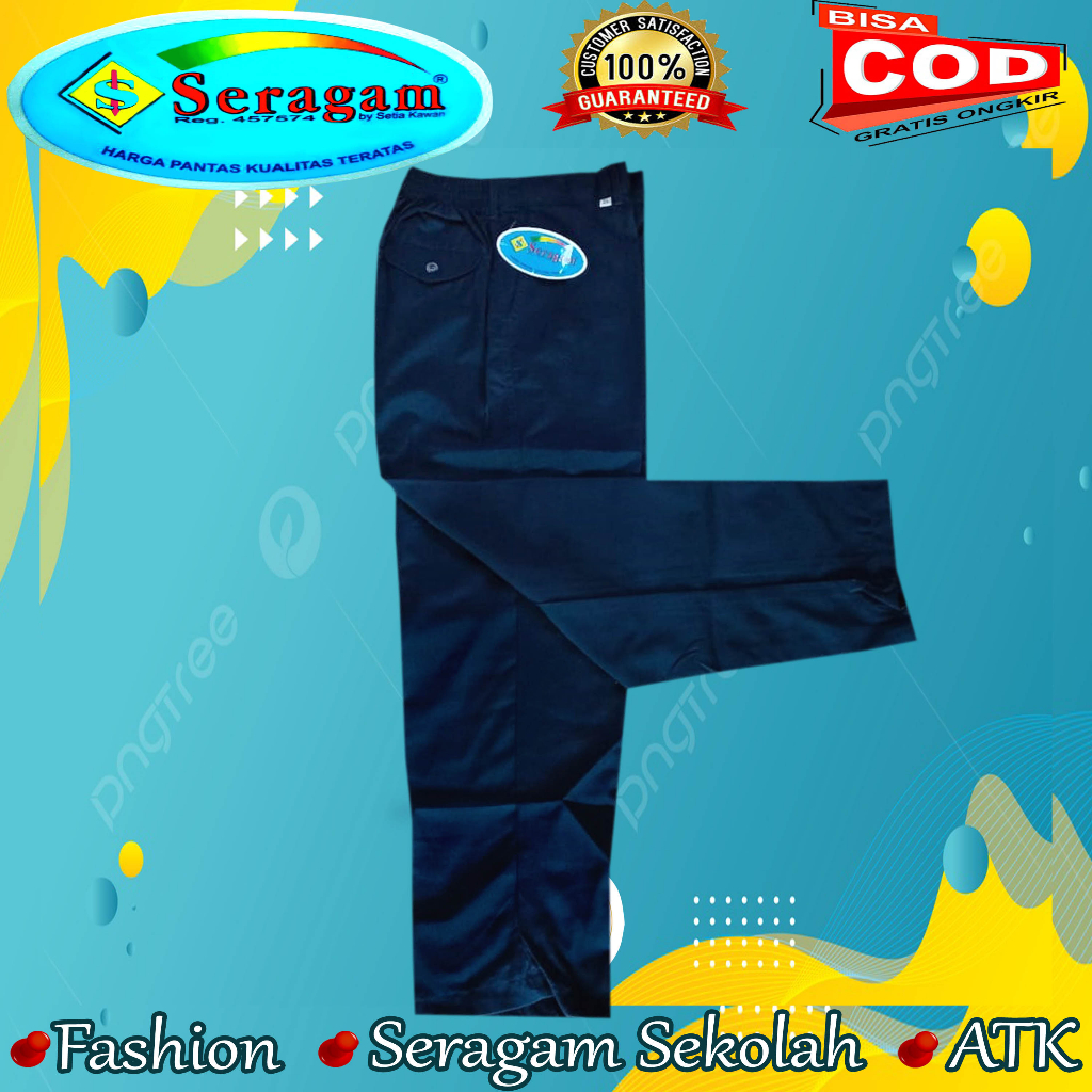 SERAGAM SEKOLAH CELANA PANJANG PINGGANG KARET SMP BIRU MEREK SERAGAM DAN BULLOFA