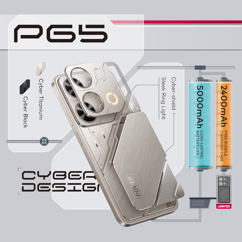 itel P65 RAM 8+8/128GB - Cyber Design with Sleek Ring Light - 120hz 6.7" Punch Hole Display - Flex Button- Bypass Chargi