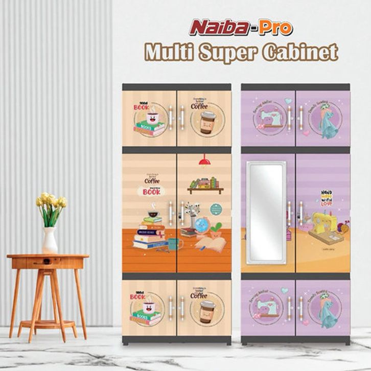Naiba 9524 / 9504 / 9624 / 9604 (Body Full Hitam) - Lemari Pakaian Plastik Naiba Jumbo Kaca + Kunci / Lemari Studio 2 Pi