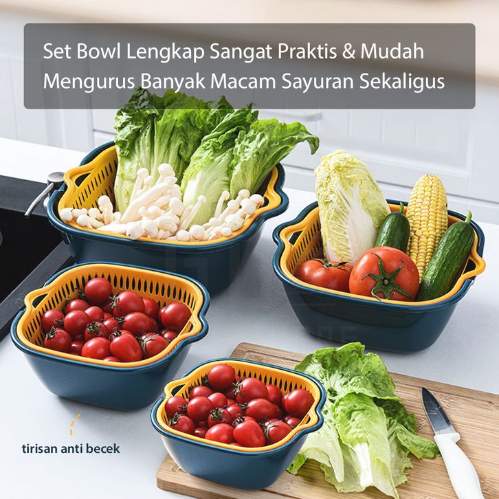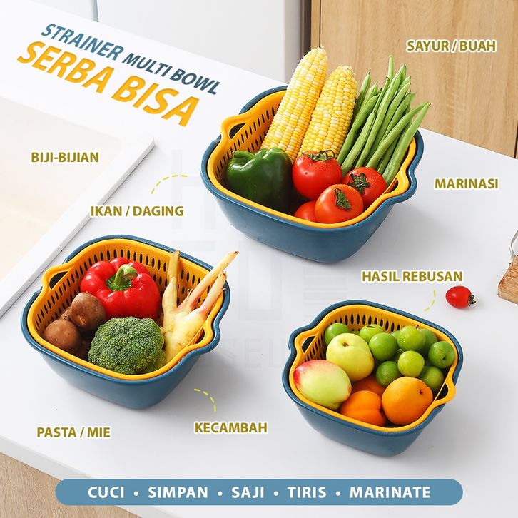 TERLAKU HUGO Keranjang Pengering Sayuran Buah Wadah Peniris Cuci Sayur Buah Saringan Serbaguna 8 in 1 igags