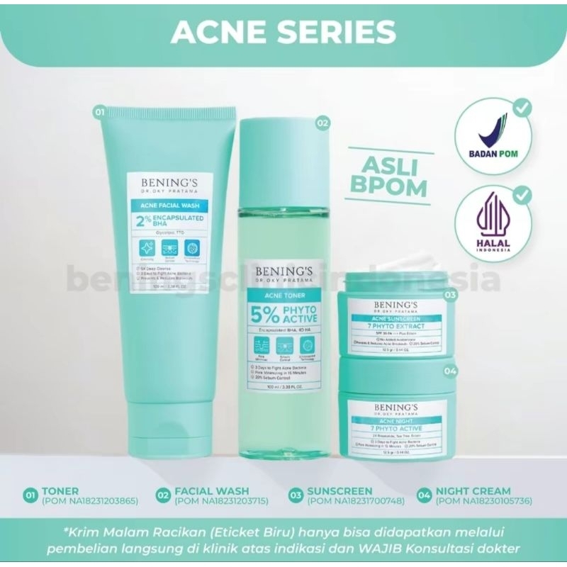 Paket Acne Benings Clinic New Skincare By Dr.Oky Pratama Bening's Glowing