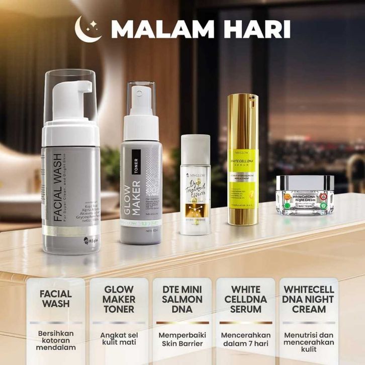 DAY CREAM, DTE CENTELA, DTE SALMON, FACIAL WASH, FW BLEMISHES, FW BRIGHTENING, FW DNA, JJ GLOW, NIGHT ACNE, NIGHT DNA, NIGHT LUMINOUS, NIGHT ULTIMATE, NIGHT WHITENING, PAKET ACNE, PAKET LUMINOUS, PAKET ULTIMATE, PAKET WHITECELLDNA, PAKET WHITENING, Pkt Acne + Dte Mini, Pkt Dna + Dte Mini, Pkt Lumi + Dark Spot, Pkt Ulti + Dark Spot, Pkt White + Dte Mini, RED JELLY, SERUM ACNE, SERUM DNA, SERUM PEELING, SUNWHITE, TONER ACNE, TONER CAVIAR, TONER DNA, TONER GLOW, TONER HYDRA