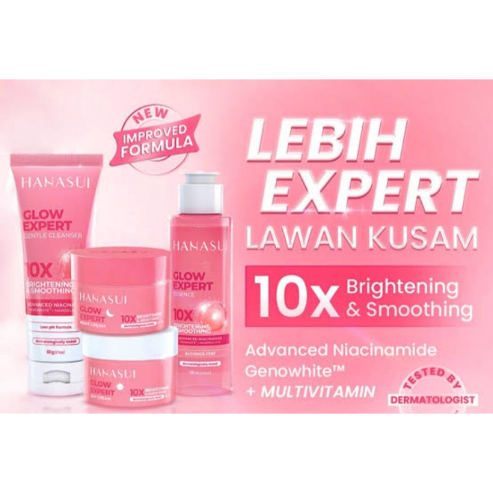 PAKET HANASUI FLAWLESS 10 K ESSENCE+DAY+NHT+GENTLE WASH/ PAKET HANASUI GLOW EXPERT KEMASAN BARU