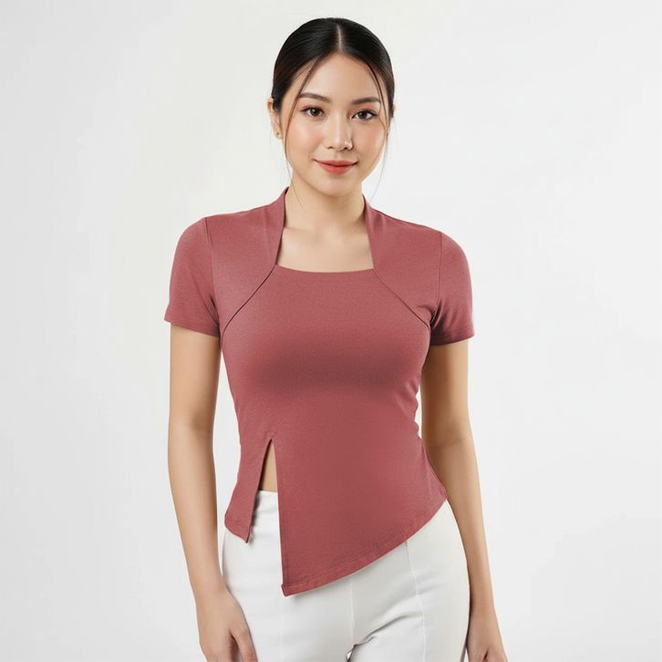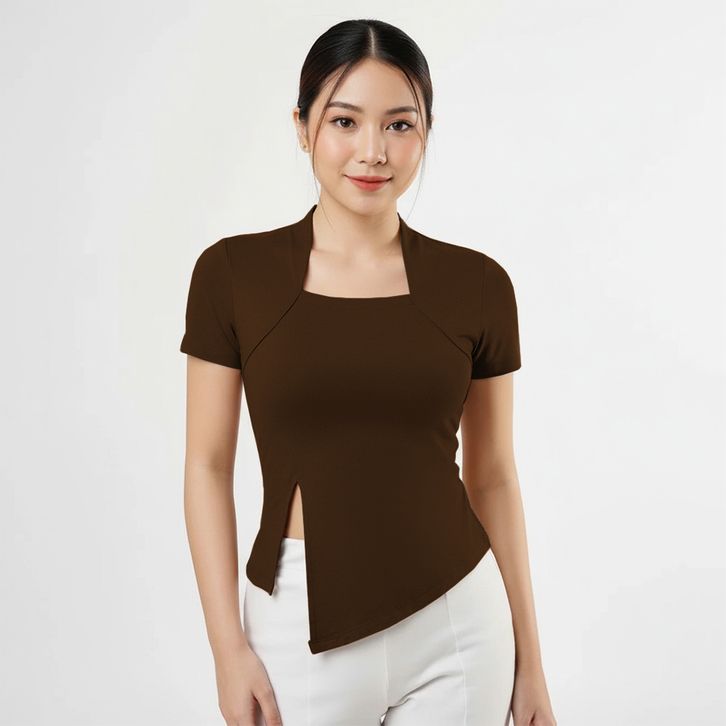 Atasan Wanita Square Neck Model Belah Samping - Kaos Wanita Lengan Pendek 6034