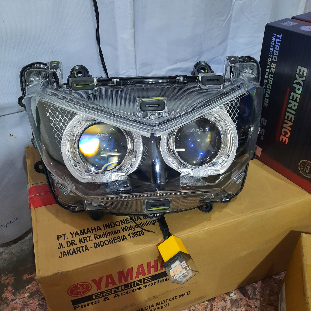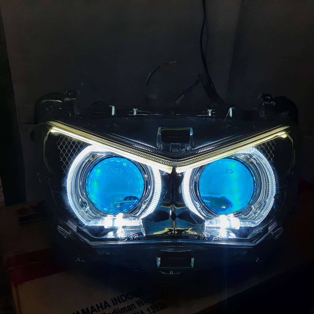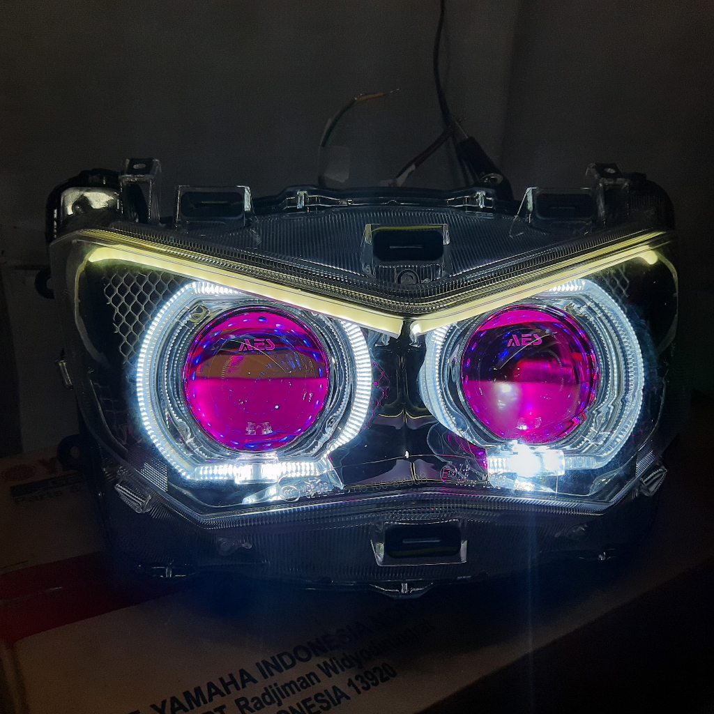 Lampu Projie AES Turbo Double Biled NMAX Old / NMAX New+ Elektrik Leveling Socket Saklar Vixion Pnp