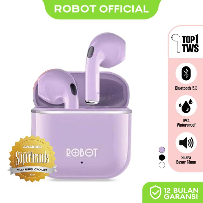 ROBOT TWS Wireless Earphone Airbuds T50S Original BT 5.3 True Wireless Headset Bluetooth Earbuds IPX4 WaterProof